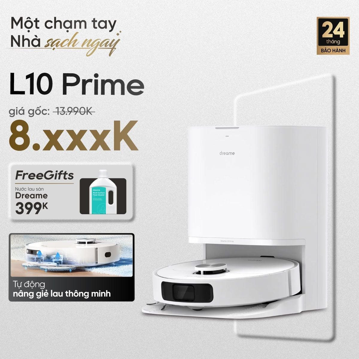Robot hút bụi lau sàn tự làm sạch thông minh Dreame L10 Prime