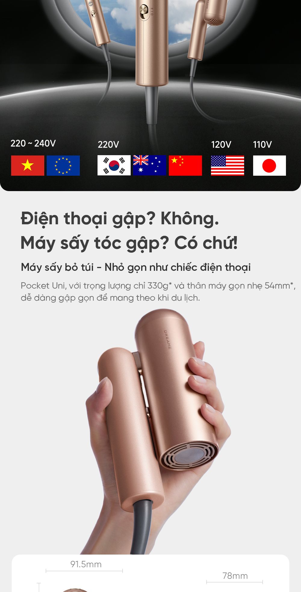 Máy sấy và tạo kiểu gấp gọn Dreame Pocket Uni